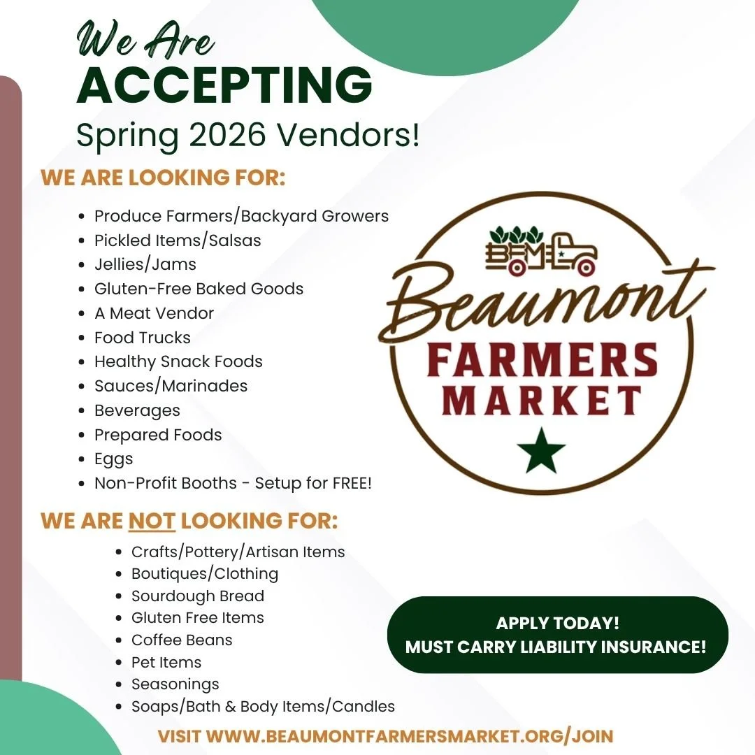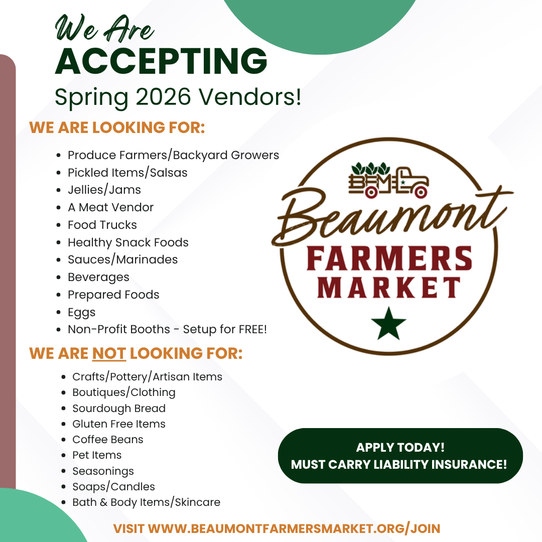 Our goal is to provide Southeast Texans with an open-air market that offers a place to shop for fresh, regionally grown produce and artisanal food products.